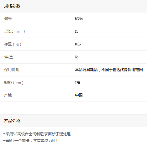產(chǎn)品名字:世達(dá)5件套6.3mm系列25mm長中孔花型旋具頭T20