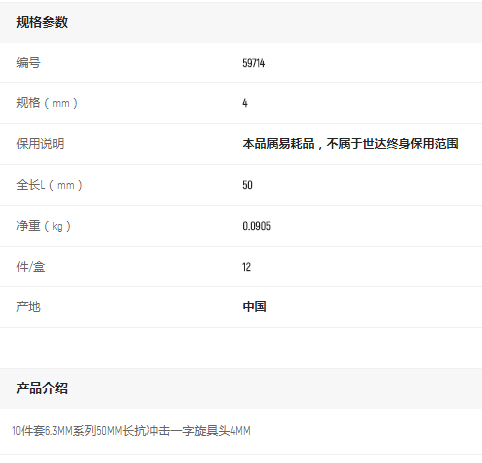 產(chǎn)品名字:世達(dá)10件套6.3MM系列50mm長一字旋具頭4MM