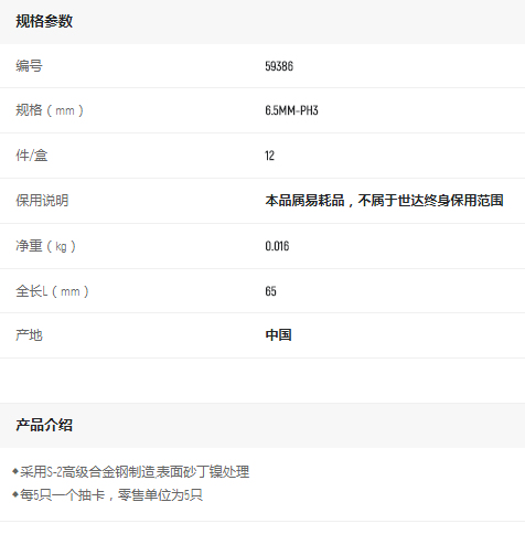 產(chǎn)品名字:世達(dá)6.3MM系列65MM長雙頭旋具頭6.5mm-PH3