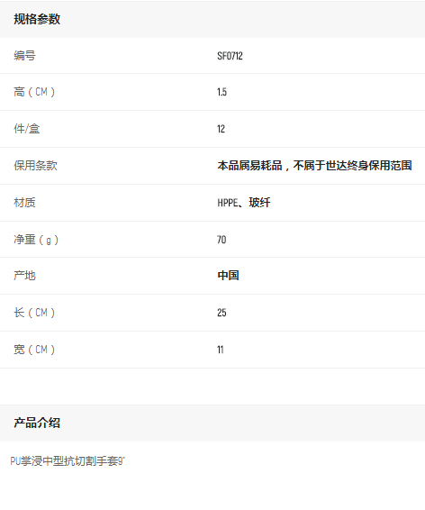 產(chǎn)品名字:世達PU掌浸中型抗切割手套9”