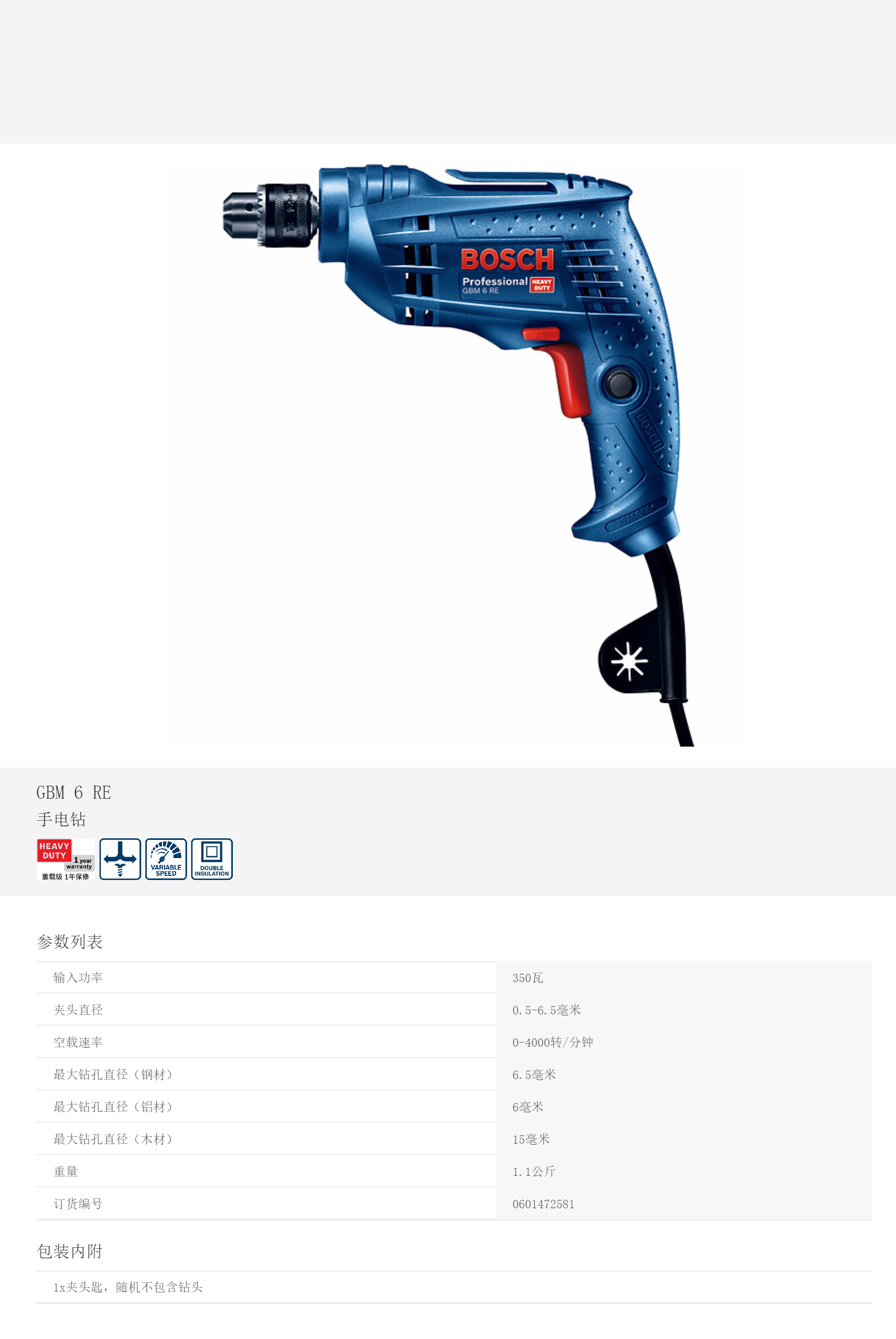 產品名字:博世手電鉆GBM6RE