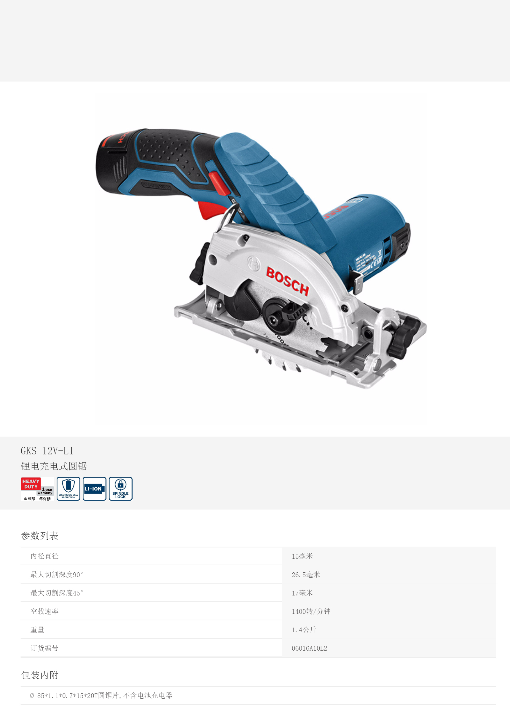 產(chǎn)品名字:博世充電圓鋸GKS12V-LI