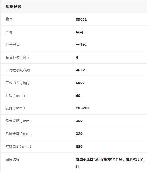 產(chǎn)品名字:世達一體式液壓拉馬6噸