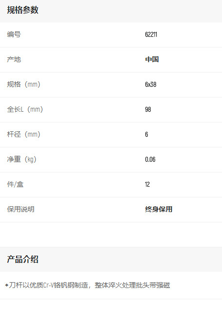 首頁>產(chǎn)品中心>螺絲批>一字螺絲批>世達A系列一字批6x38mm