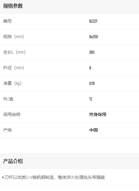首頁>產(chǎn)品中心>螺絲批>一字螺絲批>世達A系列一字批8*250mm