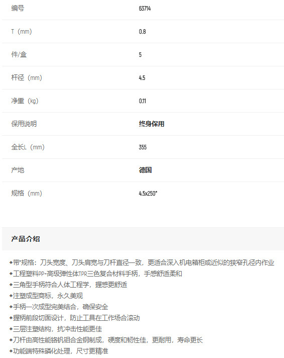 產(chǎn)品名字:世達G系列一字批4.5*250mm