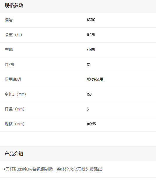 首頁>產(chǎn)品中心>螺絲批>十字螺絲批>世達A系列十字批#0*75mm